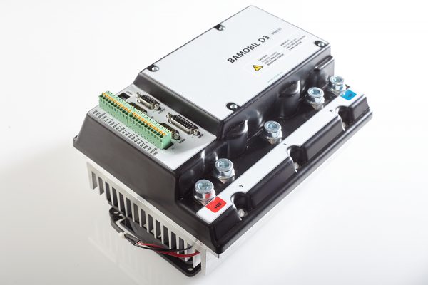 Batterie-Motorregler mit Servo-Performance für bürstenlose Servo- und Asynchronmotoren bis 7,5 kW. Zur Anwendung in batteriebetriebene Fahrzeugen wie Elektrofahrzeuge, Elektroboote, Stapler, Transportsysteme oder Regalförderfahrzeuge im rauen Einsatz, besonders als 4Q Servoantrieb, bei hochdynamischen Beschleunigungs oder Bremsvorgängen, bei großen Regelbereichen, bei hohem Wirkungsgrad, bei kleinen Motorabmessungen, bei gleichmäßigem, ruhigem Lauf für die Drehmomenten- und Drehzahlregelung oder kombinierte Drehzahl Drehmomentregelung mit oder ohne überlagerter Lageregelung. Synchro Servo Antriebe sind kompakter als andere elektrischen Antriebe.
